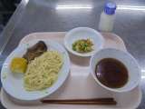 *今日の給食* ・中華つけ麺 ・チャーシュー ・蒸とうもろこし ・枝豆とキャ...