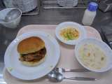 *今日の給食* ・ラタトゥユチキンバーガー ・キャベツのクリームスープ ・じ...