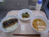 *今日の給食* ・いわしのピリ辛丼 ・じゃがいものみそ汁 ・アーモンドあえ ・...