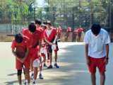 駒沢公園で、ソフトテニス部男子の都大会二日目の第一試合が始まりました。 緊張...