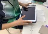 家庭科の授業で布の観察を行いました。 用意された4種類の布が「織物」「編み物」「...