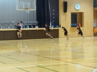バレーボール部が練習をしています。まずは、基本のレシーブを対面パスで繋げる練習に...