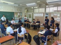 ブロック協議をしています。深中の課題は「縦割り交流に関する取組」です。他校のいろ...