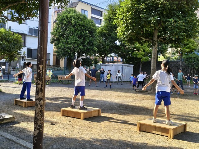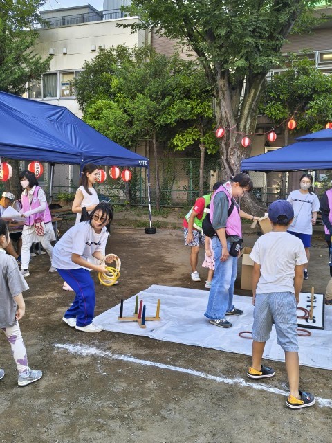東深沢町会のお祭りやラジオ体操で生徒たちはボランティアとして活躍しています。