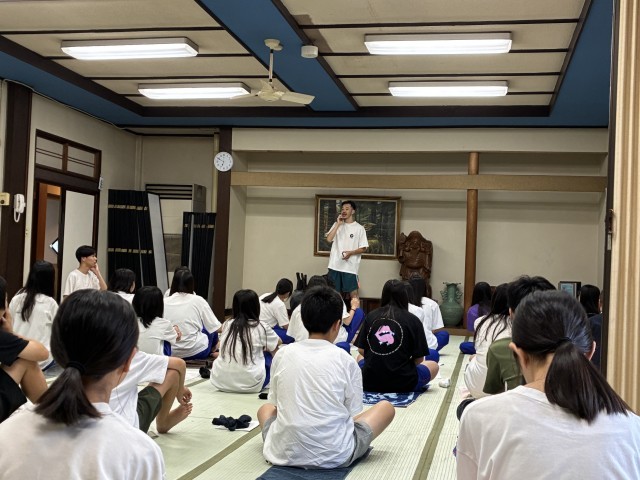 合宿二日目朝、ダンス部のヨガレッスンに剣道部も加えてもらいました。
