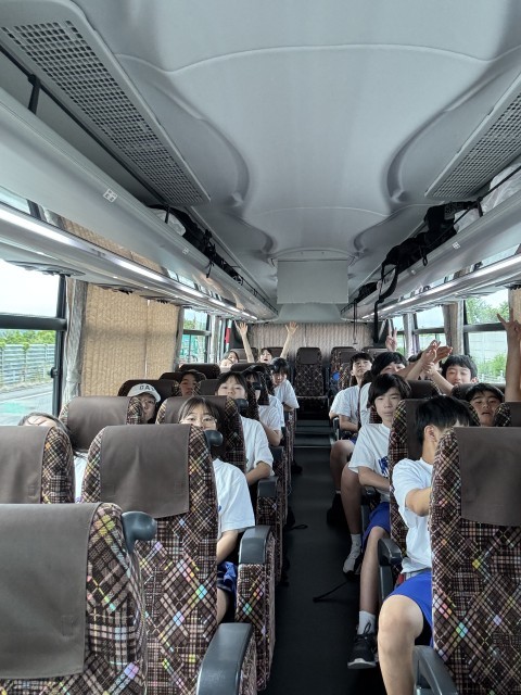 帰りのバス。少し賑やかでしたが、高速に乗ってDVDが始まると静かになりました。少し車の台数が多く、渋滞が心配です。