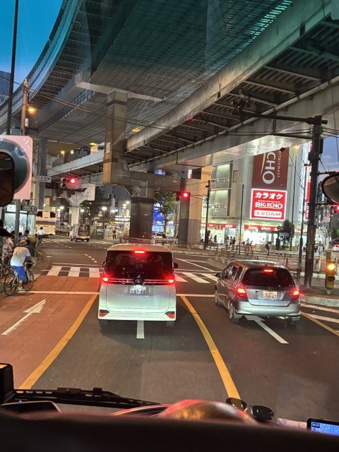 三軒茶屋通過。もう少しですが、バスの中では頭にペットボトルという不思議な遊びが、、、