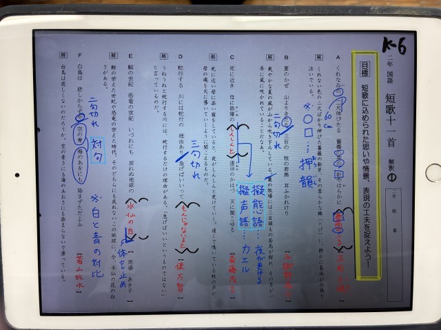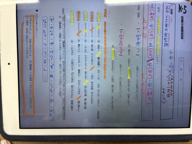 中間考査範囲の最後の単元、短歌の学習です。集中していました。