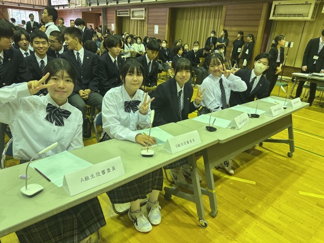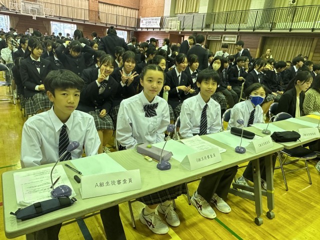 各学年の代表生徒が審査員として、歌声や表現力、一体感などの観点から、全クラスの合唱を真剣に聴いていました。
