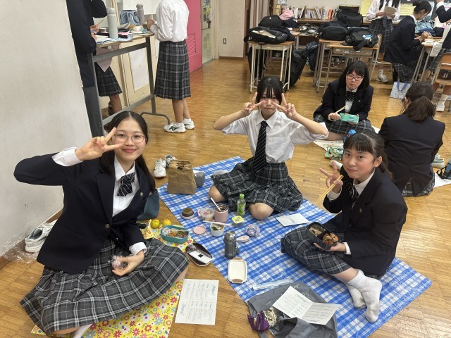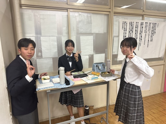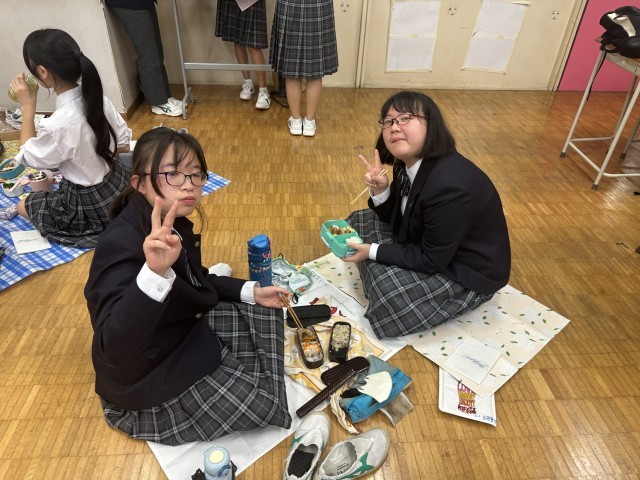 合唱をやりきった後の昼休み。生徒たちは仲間と笑顔でお弁当を囲んでいます。