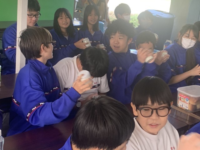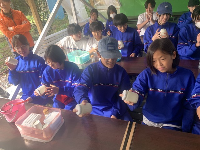 バターを作っています!めっちゃシェイク!!
