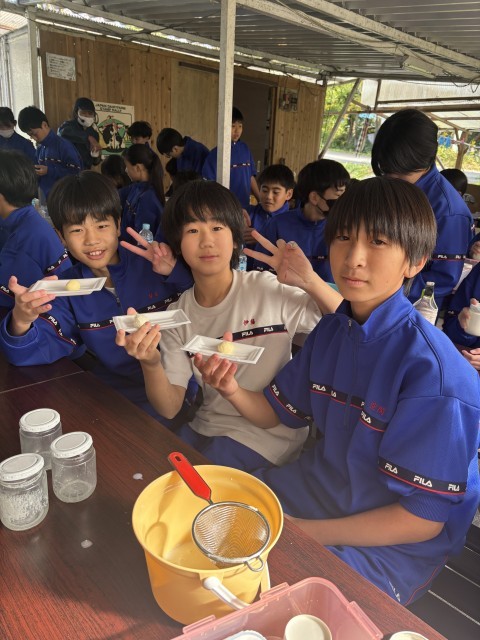 餌やり、乳搾り、バター作り体験を頑張りました。
