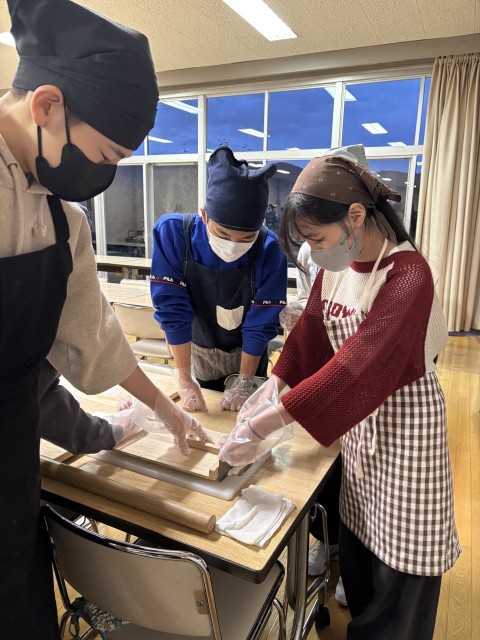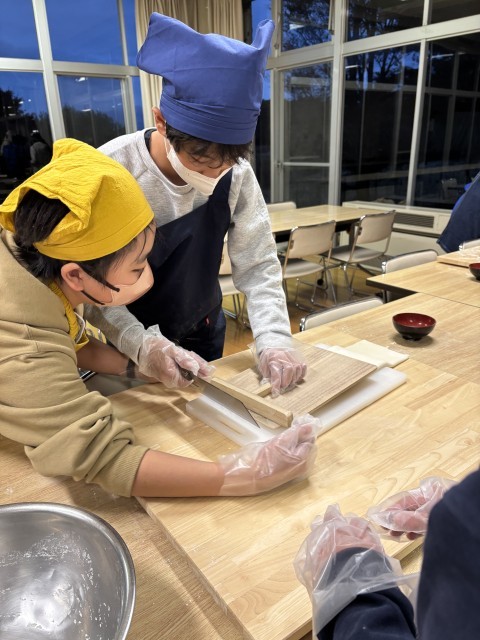 順番に、みんなで見守りながらうどんを切り分けていました。