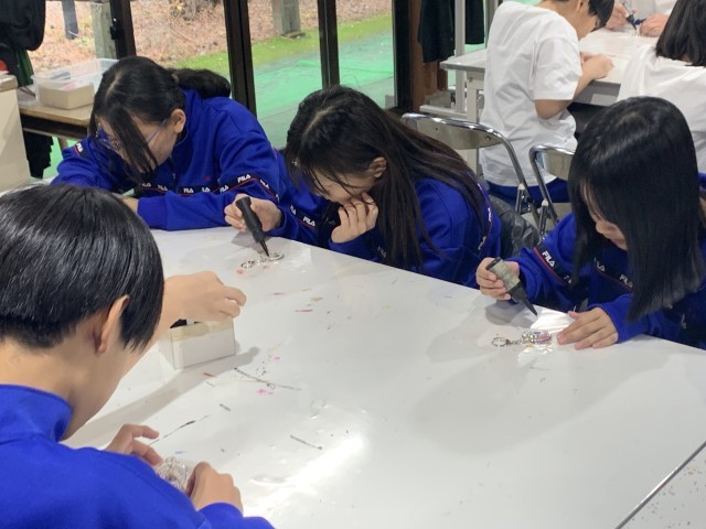 キーホルダー作りの様子です!みんな上手に作れていました!