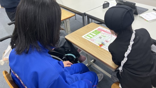 地理の授業として、桃鉄すごろくを行いました。身近な場所のスポットをマップで調べて、自分たちでマス目の効果を考えました。白熱していましたね!