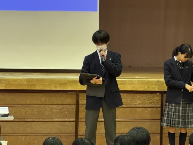 各クラスの学級委員から二学期の反省とともに、「仲間と支え合いながら受験を乗り越えていこう」という思いが語られました。