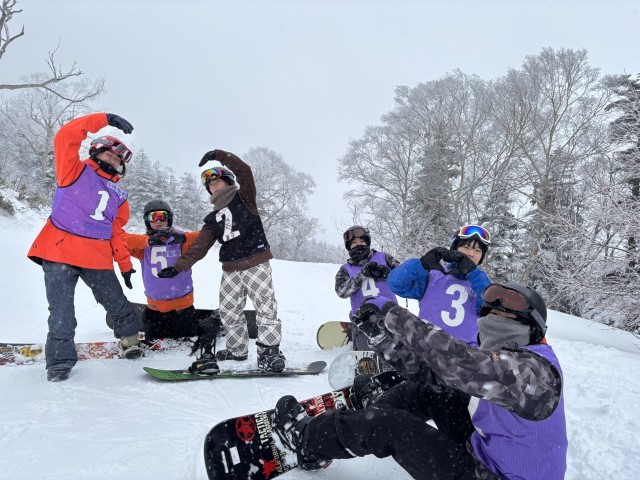 中級コースです。何度リフトに乗ったか、もう全く分かりません。技にも挑戦したりしながら、ひたすら滑り続けました!みんな上手!私の体力は限界です。平光