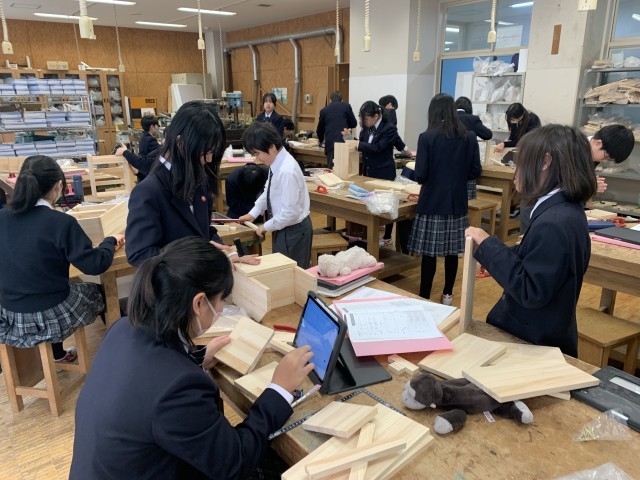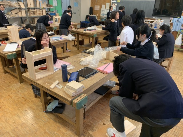 技術の授業の様子です!やすりがけや釘打ちなどの作業を楽しみながら活動していました!