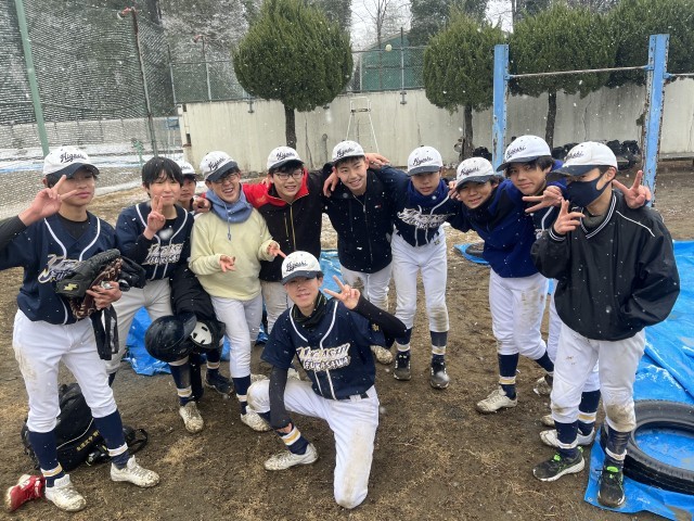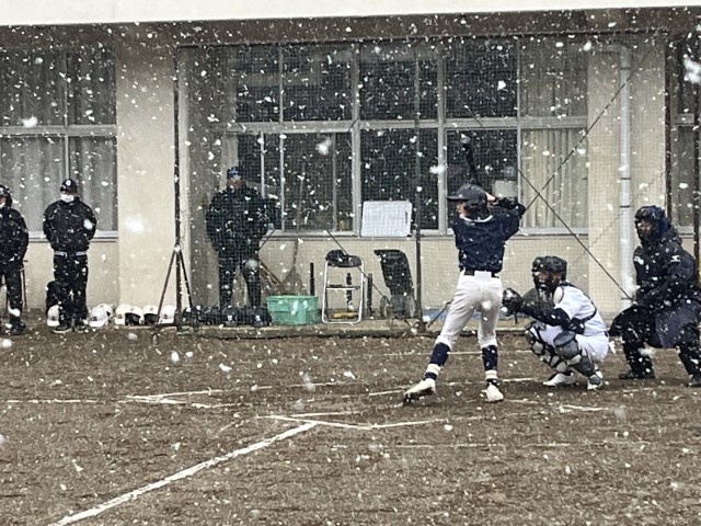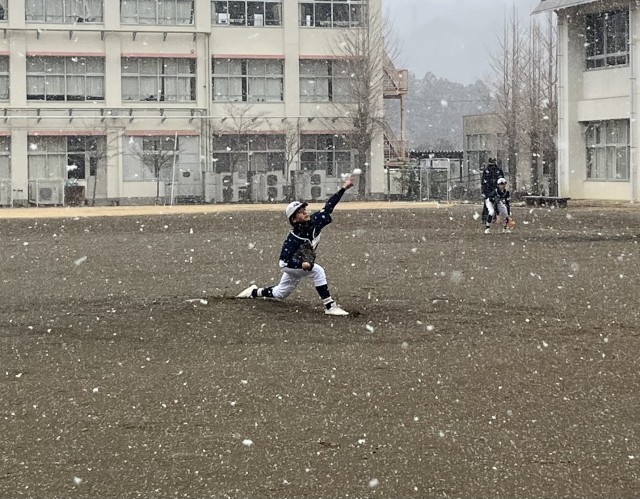 始まる前から雪が降っていて、寒い中でしたが、楽しんで試合をしていました。
