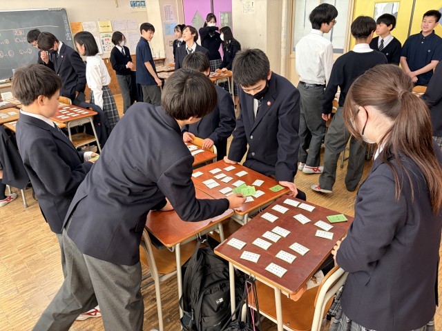 国語の授業で積み重ねた努力を生かし、どの生徒も真剣ながら笑顔で挑戦。