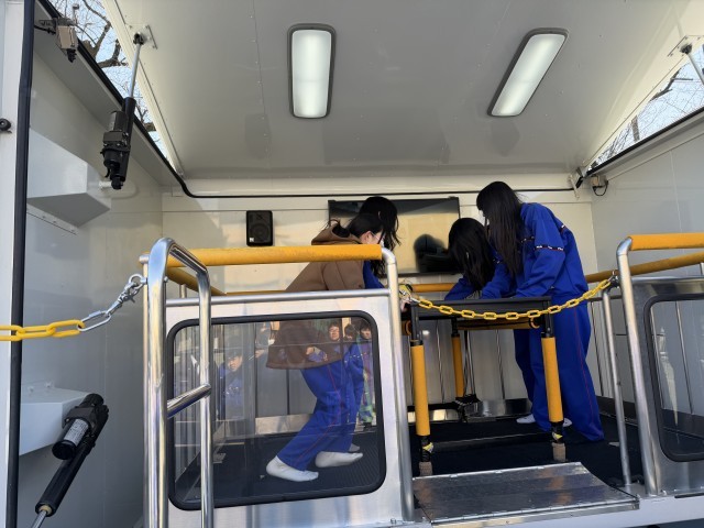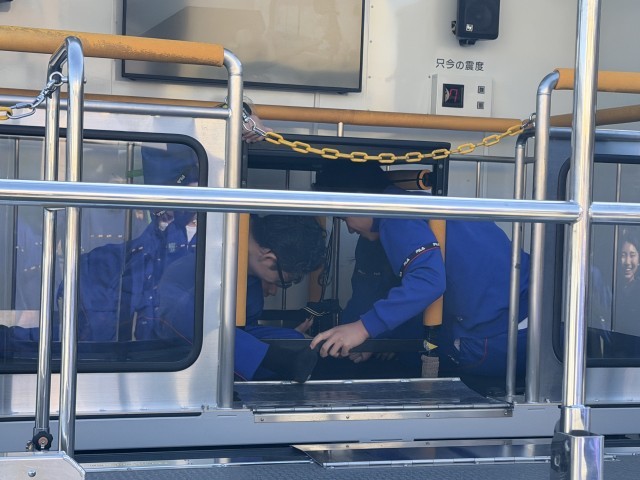 起震車体験と煙中体験を行いました。実際の揺れを体感し、地震の怖さと身を守る行動の大切さを学びました。