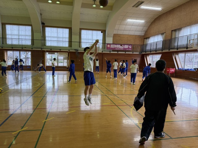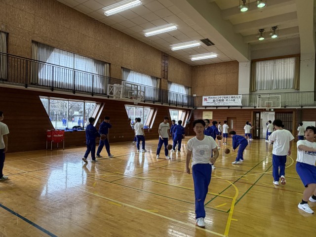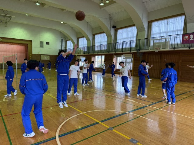 体育館では女子がバレーボール、男子はバスケットボール