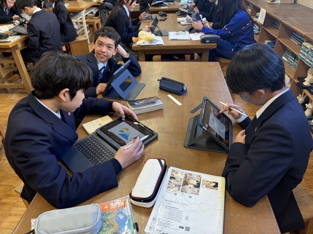 美術の授業で、ブックカバーをiPadを使って作成しています!人それぞれ個性が出ていて面白いです!
