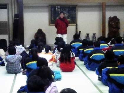 昼食を済ませ、開校式をしました。コミュニティーの方、旅館の方からお話をいただき、いよいよゲレンデへ向かいます。