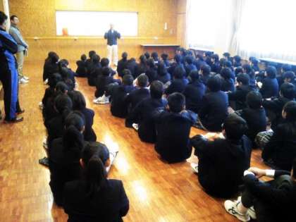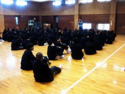 さて、1月8日(火)、第三学期始業式を、冷えきった体育館を生徒たちの熱気が温ませるなか、とりおこないました。この日は全校で6人の転入生を迎え、式後は学年ごとに自己紹介がありました。