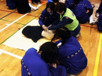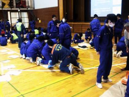 3月11日(月)、三年生は救急救命講習を実施しました。講義や実技を学び、初級救命講習の修了資格が得られます。人の生命に関わることなので、とても真剣に受講していました。
