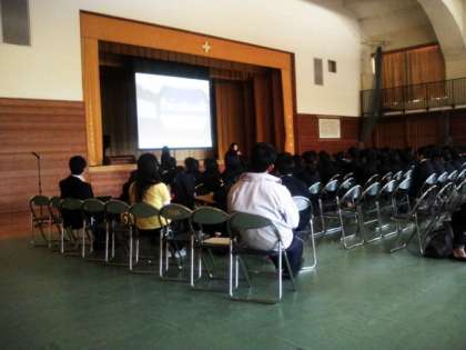 5月2日(木)、一年生を対象に講師をお招きしてのネットリテラシー講座を開催しました。携帯電話、スマートフォン、パソコンを用いたソーシャルネットワークサービス(SNS)の利点、逆に失敗例や恐さなど、わかりやすく説明していただきました。