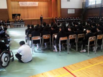 5月17日(金)、今年度の生徒会活動の活動方針を決める生徒総会が行われました。生徒会本部役員、専門委員長から提案がされ、質疑の後すべての議案が承認されました。