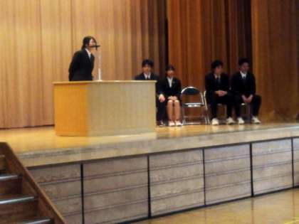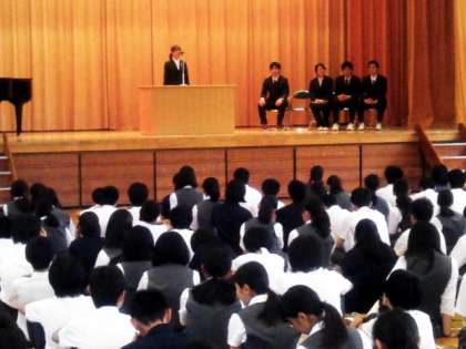 6月15日(土)、5人の教育実習生が三週間の実習を終えました。この日の朝、臨時朝礼を開き、実習生一人一人からお話をしていただきました。皆さん、ぜひ先生になってください。応援しています。