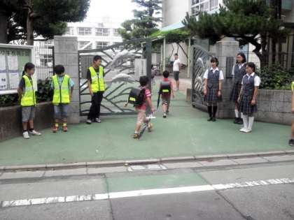 6月18日〜21日、みしまの森学舎あいさつ運動を行いました。生徒会本部役員が二校の小学校に行き、朝の登校時に児童の皆さん、先生方と一緒に元気にあいさつをしました。