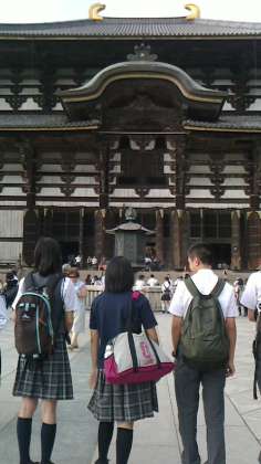 東大寺大仏殿を間近に。その壮大な景観には圧倒されます。