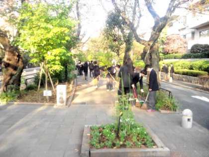 秋も深まった月曜朝の風景です。たくさんの生徒がボランティア活動に参加しています。