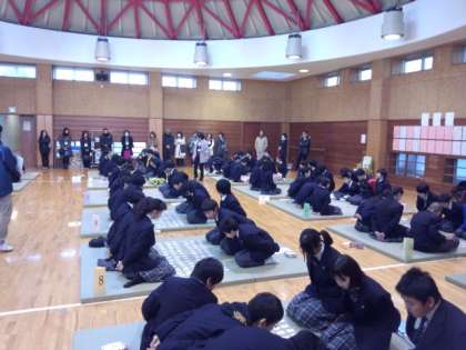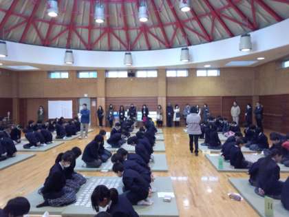 1月11日(土)1年生は百人一首を行いました。国語の授業や学活などで練習や暗記を繰り返し、冬休みの宿題で一生懸命覚えてきました。