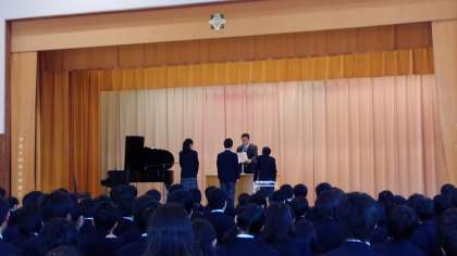 3月25日(火)の一校時に修了式を行いました。各学年の代表生徒が修了証を手渡されました。校長先生から「人の喜びを自分の喜びと感じること」の大切さをお話しがあり、節目となる1日となりました。