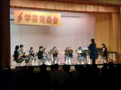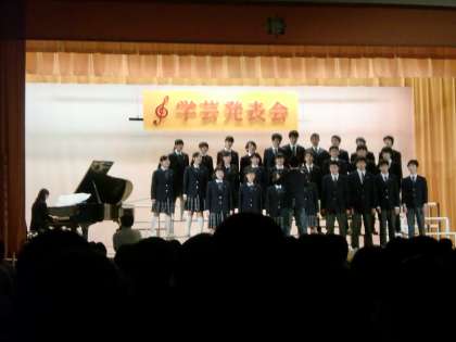 学芸発表会 公開日 2014/10/25 更新日 2014/10/25 できごと 10月25日(土)の学芸発表会、午前はI組、ダンス部、日本文化部、吹奏楽部の発表でした。午後は各クラスによる合唱コンクールでした。どの発表も舞台で、全力を発揮した発表を披露することができました。当日は多数の参観をいただき、大変ありがとうございました。 いいね(1)