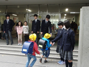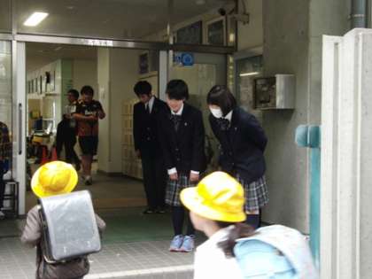 11月4日(火)・5日(水)の両日、生徒会本部役員が東深沢小学校へあいさつ運動に行きました。小学校の登校時間に昇降口で出迎え、小学生と元気に挨拶を交わしました。中学校ではこうした小学校へ出向いた連携活動も行います。