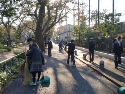 朝ボランティア 公開日 2014/11/10 更新日 2014/11/10 できごと 秋も深まり、呑み川の桜並木も落ち葉の季節となりました。11月10日(月)に朝ボランティアがありました。多くの生徒たちが、竹ほうきやチリトリを手にして、降り注ぐ朝日の中和やかな会話と共に清掃活動に取り組みました。 いいね(0)