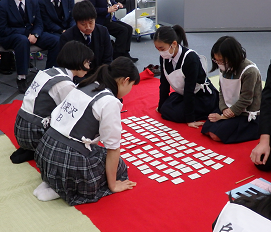 3月7日(土)に、世田谷区教育センターで百人一首大会がありました。本校からは2年生女子が出場。熱戦の末、準決勝を勝ち抜きましたが、おしくも決勝で用賀中に敗れてしまいました。