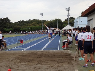 本日(10月1日)区立総合運動場で区陸上競技大会が行われました。雨が降ったり止んだりの不安定は空模様。