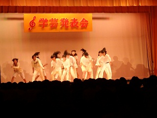I組の和太鼓から始まった舞台、そして合唱コンクール。すべての生徒が、すべてのクラスが力を出し切りがんばりました。写真はダンス部の発表場面です。シャッターを押すのを忘れ、舞台に見入ってしまいました。