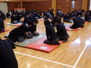 今日の2年生は、うきうきする授業が続きます。午後は百人一首大会。真剣な眼差しで、札の位置を確認。得意な人は、上の句が読み終わらない内に「はい」と勢いよく札をとりにいきます。さて、優勝は?午前中に食べたポップコーンでパワーとやる気全開です。