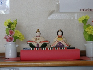 立春を過ぎ、厳しい寒さの中にも、春の日差しを感じられるようになりました。24日(水)は都立一次入試が行われます。3年生にとって、春はまだ先のことかもしれませんが、梅の花が満開になり、次は桃の節句。確実に春は近づいています。昇降口正面にひな人形を飾りました。ひな人形のかわいらしさに、少しほっとしてもらえれば、と思っています。