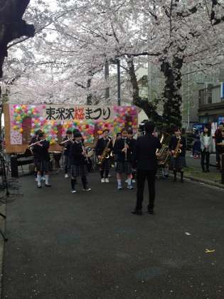 花冷えのする2日(土)、東深沢桜まつりが行われました。本校からは日本文化部、吹奏楽部、ダンス部が出演。写真は吹奏楽部がイス無し、諳譜で演奏する場面。花冷えの空気が温まったかな?地域の皆様、進化し続けるHIGASHIをよろしくお願いいたします。