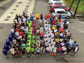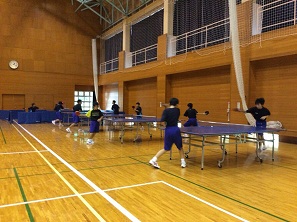 留守番の先生方は、昨日、今朝と相変わらずの不安定な天気にビクビクしています。合宿先の福島から、元気な笑顔が届きました。ぜひこの笑顔で雨雲を吹き飛ばしてほしいですね。卓球部も普段より広い空間でのびのび練習しています。