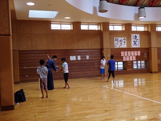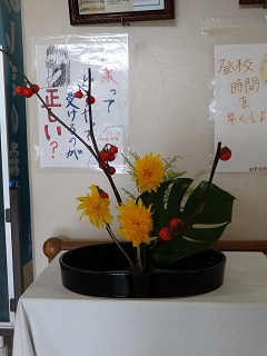 8月24日(水)25日(木)と学舎内小学生対象の部活体験が行われます、先日の台風の影響で大会の予定が変更になり、部活体験の予定も変わってしまいました。不可抗力とはいえ、たいへん申し訳ないです。写真は剣道部の体験。ほんの少しですが、中学校の部活動を理解できたでしょうか。もう一枚は地域の方が活けてくださった花。蒸し暑い中ですが、さわやかな感じがしますね。