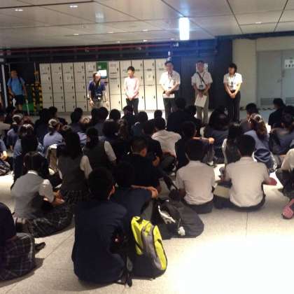 今日、3年生が修学旅行に出発しました。東京駅団体集合場所は、修学旅行に行く3年生があふれていて、ラッシュ状態。出発式は雨雲を吹き飛ばす大きな声で行われました。